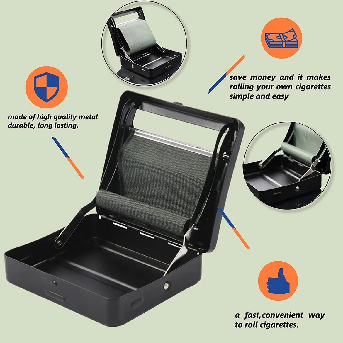 Introducing the ultimate game-changer for all your rolling needs: our Automatic Rolling Machine! No more fumbling with papers or uneven rolls—this nifty gadget takes the hassle out of the process, delivering perfectly rolled products every single time. Designed for ease of use, it’s perfect for both beginners and seasoned pros looking to elevate their rolling game. This automatic rolling machine boasts a user-friendly interface, so you can roll with just the push of a button. With its sleek design and compact size, it fits seamlessly into any space, whether you’re at home or on the go. Plus, its durable construction ensures that it’s built to last, giving you a reliable rolling companion for years to come. But that’s not all—our rolling machine also comes with a spacious storage compartment to keep all your supplies organized. Say goodbye to clutter and hello to convenience! You can easily store your papers, filters, and other essentials right alongside the machine, making it a breeze to stay organized and ready to roll. So why wait? Upgrade your rolling experience with our Automatic Rolling Machine today! Perfect for those who value efficiency without sacrificing quality, this product will have you rolling like a pro in no time. Grab yours now and discover the joy of effortless rolling!